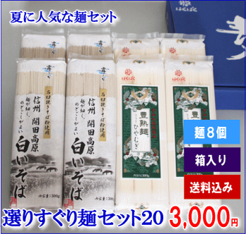【こめひこ麺】【よりすぐり麺8個セット】豊熟麺ひやむぎ(4)白いなそば(4)(北海道・九州・沖縄 別途600円) 【楽ギフ_包装】 【楽ギフ_のし】【楽ギフ_のし宛書】【楽ギフ_メッセ入力】【RCP】10P09Jul16